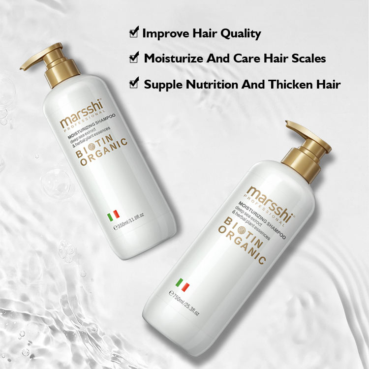 The MARSSHI series of Moisturizing Shampoo with Organic Biotin, is a compound shampoo containing organic biotin, which can be used for thickening hair. The advanced treatment and anti-dropping formula unclogs pores and removes DHT, while moisturizing the scalp and stimulating circulation and hair follicles.